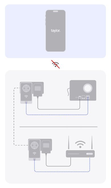 If routing the Ethernet cable is economically or logistically unfeasible, a powerline adapter can be used. This allows the Taylor gateway to connect to the internet via the home's power grid.